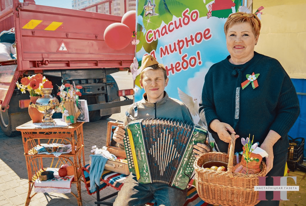 Практычна на ўсёй прасторы кірмашу выразна адчувалася набліжэнне велічнага свята Перамогі, на якое з болем, хваляваннем і ўдзячнасцю адгукаецца сэрца кожнага беларуса.