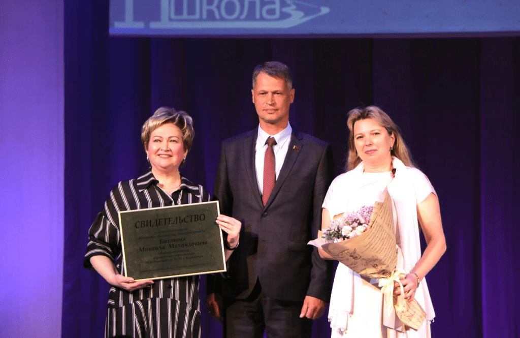 Свидетельство о присвоении учреждению образования имени Михаила Бахтина директору школы Нелли Оберемок вручил глава администрации Октябрьского района Витебска Владимир Белевич. Это произошло в торжественной обстановке, на празднике, который СШ № 11 ежегодно проводит в преддверии летних каникул, чтобы отметить самых старательных воспитанников и их наставников за достижения и трудолюбие. Гостями мероприятия стали также потомок философа — Светлана Бахтина, представители ВГУ им. П. Машерова и Белорусской Православной Церкви.