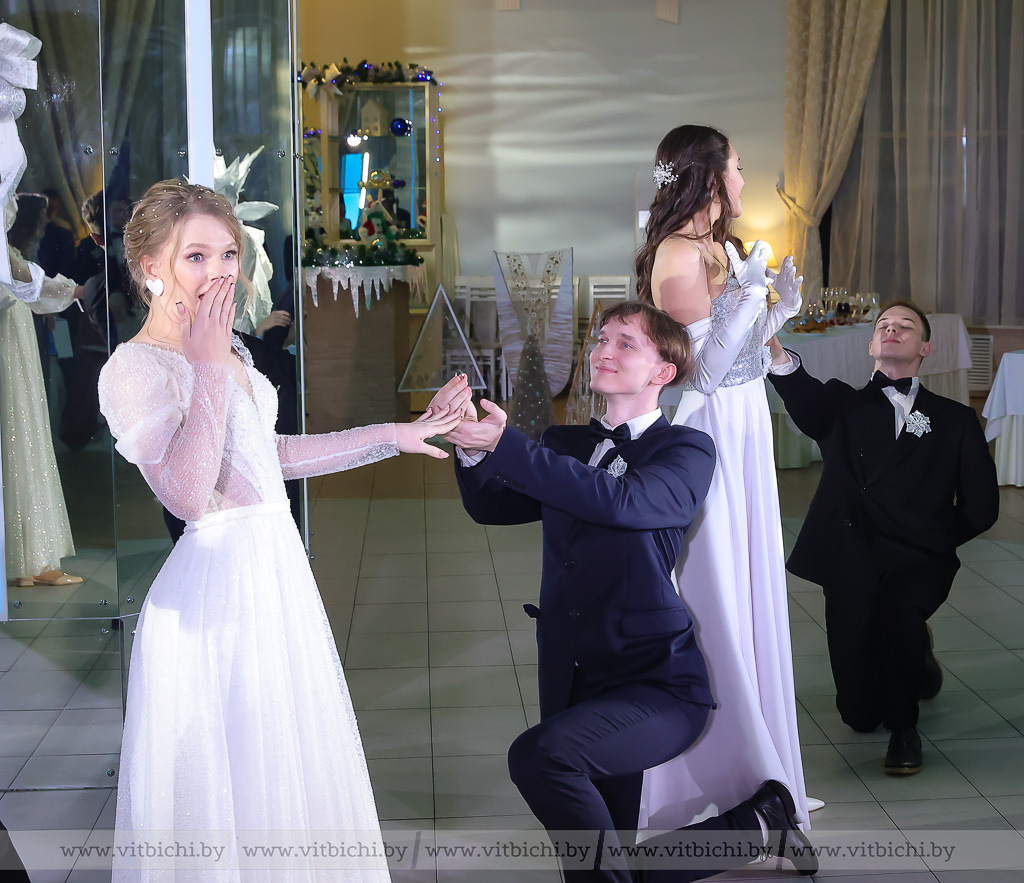Участники сегодняшнего бала — отличники учебы, призеры и лауреаты международных конкурсов и олимпиад, дипломанты научно-практических конференций, активные участники студотрядов, волонтеры, спортсмены. Более 40 пар юношей и девушек принимают поздравления от руководства области за высокие показатели в учебе и общественной жизни в 2023 году. Заместитель председателя Витебского облисполкома Вячеслав Дурнов вручил благодарности молодым людям за значительные успехи в учебной и научной деятельности.