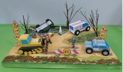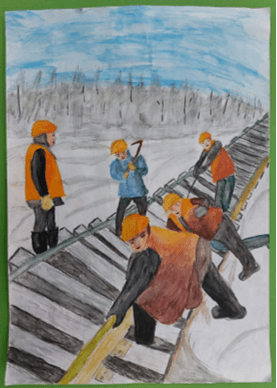 ”Соблюдай безопасность при проведении дорожных работ“, работа Юрченко Ильи, 14 лет.