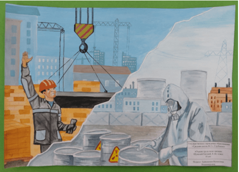 ”Охрана труда – залог жизни“, рисунок Шумского Евгения, 10 лет.