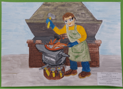 ”Безопасный труд только в радость“, рисунок Казакевича Глеба, 10 лет.