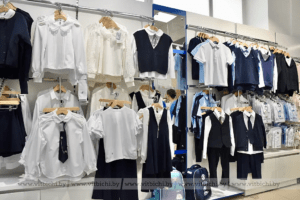 В ОАО «Витебский универмаг» нас встретили приветливые сотрудники. Заместитель заведующего секцией «Детская одежда, трикотаж» Татьяна Ильмович показала новые модели школьной формы для мальчиков и девочек – брюки и юбки, пиджаки и жакеты, рубашки и блузки. Одежда делового стиля изготовлена из смесовых тканей, устойчивых к износу: хлопка, поливискозы, вискозы, трикотажных тканей. Стиль – минимализм, крой – прямой или приталенный. Большинство изделий – темно-синего и черного цвета, рубашки – классические белые, светло-голубые. На блузках для девочек – кружевные вставки, пуговицы, декоративные принты.