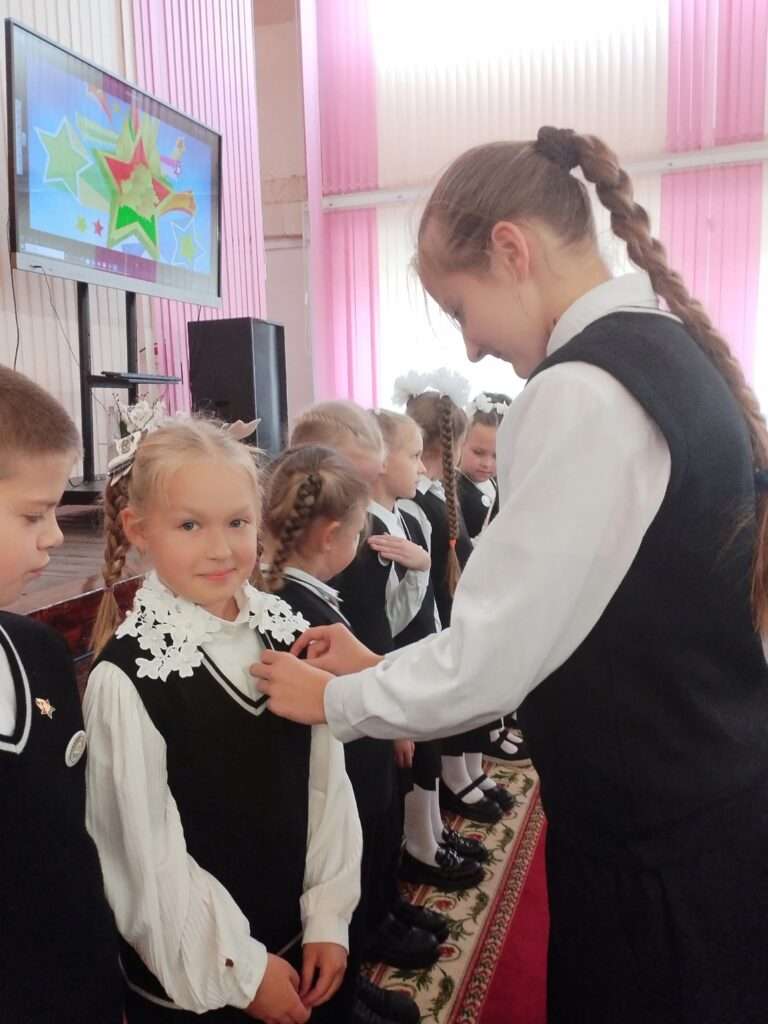 Активисты пионерской дружины вручили ребятам октябрятские звёздочки, сказали напутственные слова.