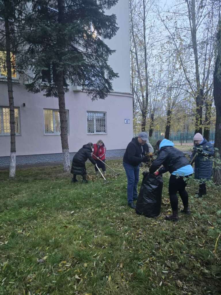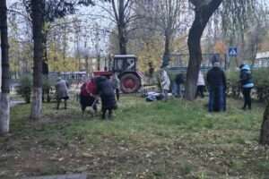 25 октября 2025 г. работники главного управления по образованию совместно с подведомственными учреждениями приняли участие в республиканском субботнике по уборке прилегающей территории к административному зданию.