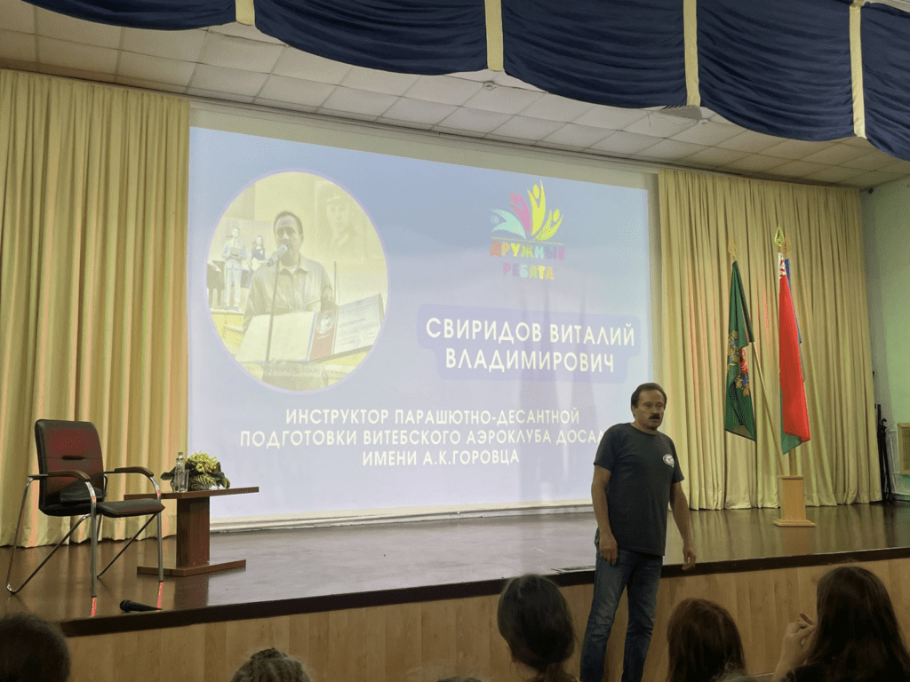 30 июля 2025 года в рамках Республиканской акции «Шаг к успеху» воспитательно-оздоровительный лагерь «Дружные ребята» посетил Свиридов Виталий Владимирович, инструктор парашютно-десантной подготовки Витебского аэроклуба ДОСААФ имени А.К.Горовца.