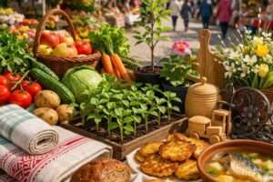 Во время ярмарки будут работать мини-кафе с реализацией кондитерских и хлебобулочных изделий, драников, ухи и других блюд белорусской кухни.