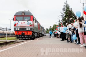 Встречали гостей торжественно. Вдоль железнодорожного полотна выстроились дети с шариками, а на привокзальной площади развернулась театрализованно-хореографическая постановка.