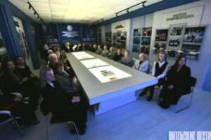 Учащиеся СШ № 40 провели для гостей экскурсию по музею, рассказав о восьми тематических экспозициях, каждая из которых раскрывает историю и особенности развития образования в районе с 1938 года.