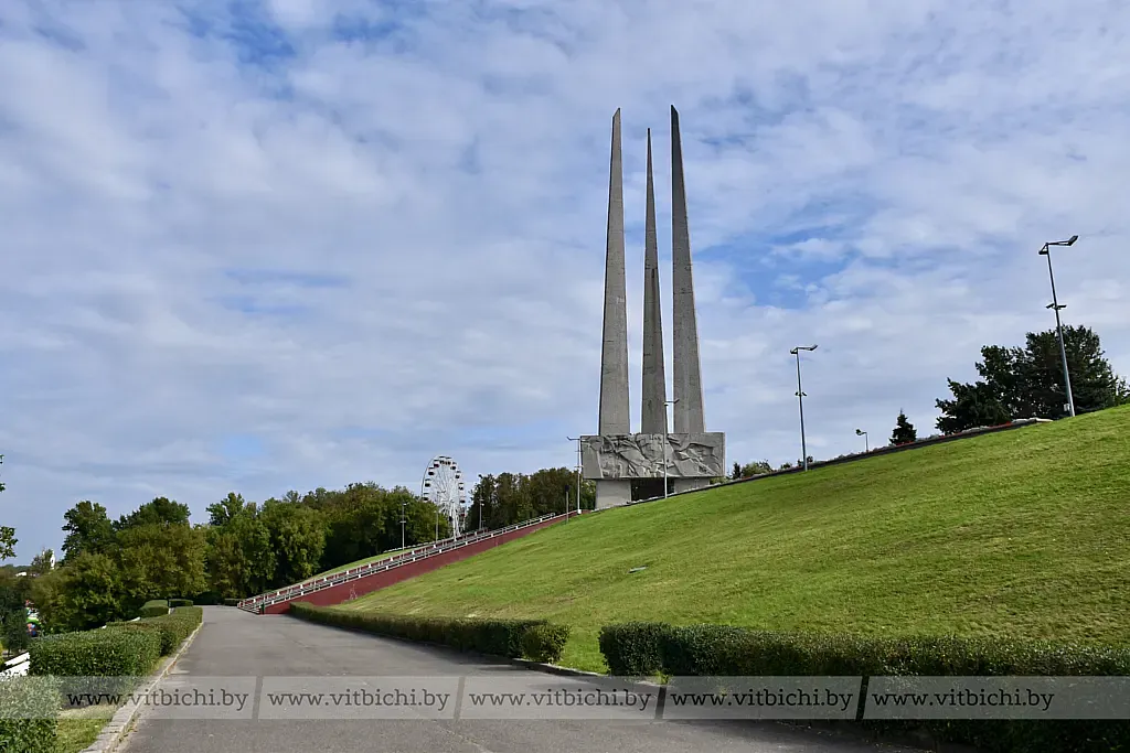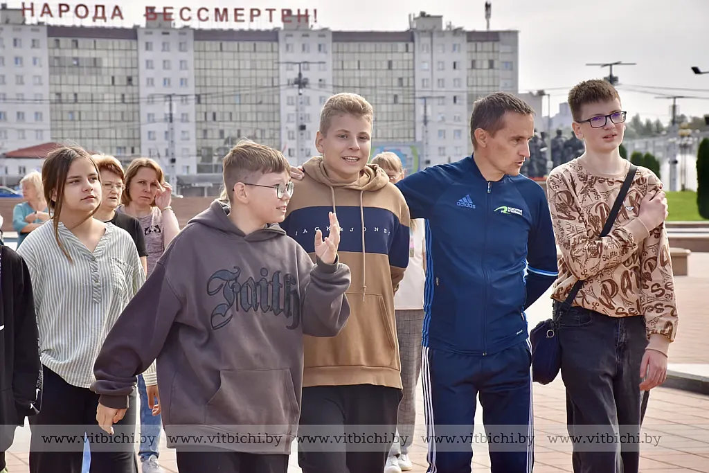 Молодые люди собрались возле мемориальной доски Герою Советского Союза Фёдору Блохину, которая установлена при входе на одноименный мост по улице Генерала Белобородова. Следуя экскурсионным маршрутом, группа поднялась по ступеням монументальной лестницы, ведущей от набережной Западной Двины к Вечному огню мемориального комплекса в честь воинов-освободителей, партизан и подпольщиков Витебщины. Гид предложил учащимся сосчитать количество этих ступеней. Интересный факт: их оказалось ровно 80. От площади Победы экскурсанты прошли в парк Победителей и к памятнику десантникам всех поколений.