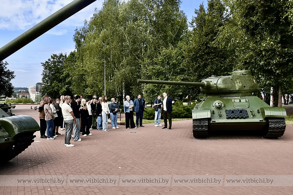 Юноши и девушки с интересом слушали рассказ педагога. Стратегическое значение моста через Западную Двину в дни освобождения Витебска от немецко-фашистских захватчиков и подвиг командира саперного взвода Фёдора Блохина, который вместе с бойцами спас мост от подрыва. Как и когда строилась площадь Победы с ее тремя пилонами, устремленными ввысь, и что значит для всех поколений витебчан главная площадь города на Двине. Как и благодаря кому в июне 1944-го наш город обрел долгожданную свободу. Какая боевая техника установлена в парке Победителей и почему Витебск по праву считается десантной столицей Беларуси.