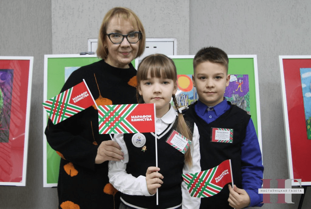 Вучні дзякавалі сваім настаўнікам, а тыя з трапятаннем і гордасцю гаварылі аб вучнях, іх працоўных і творчых поспехах, вынаходках, навуковых пошуках. Самымі юнымі аўтарамі, работы якіх прадставіў “Марафон адзінства”, сталі пераможцы абласнога этапу адкрытага конкурсу малюнка навучэнцаў пачатковых класаў “Мы разам”. Выстава адбылася ў Віцебскім лядовым палацы спорту.